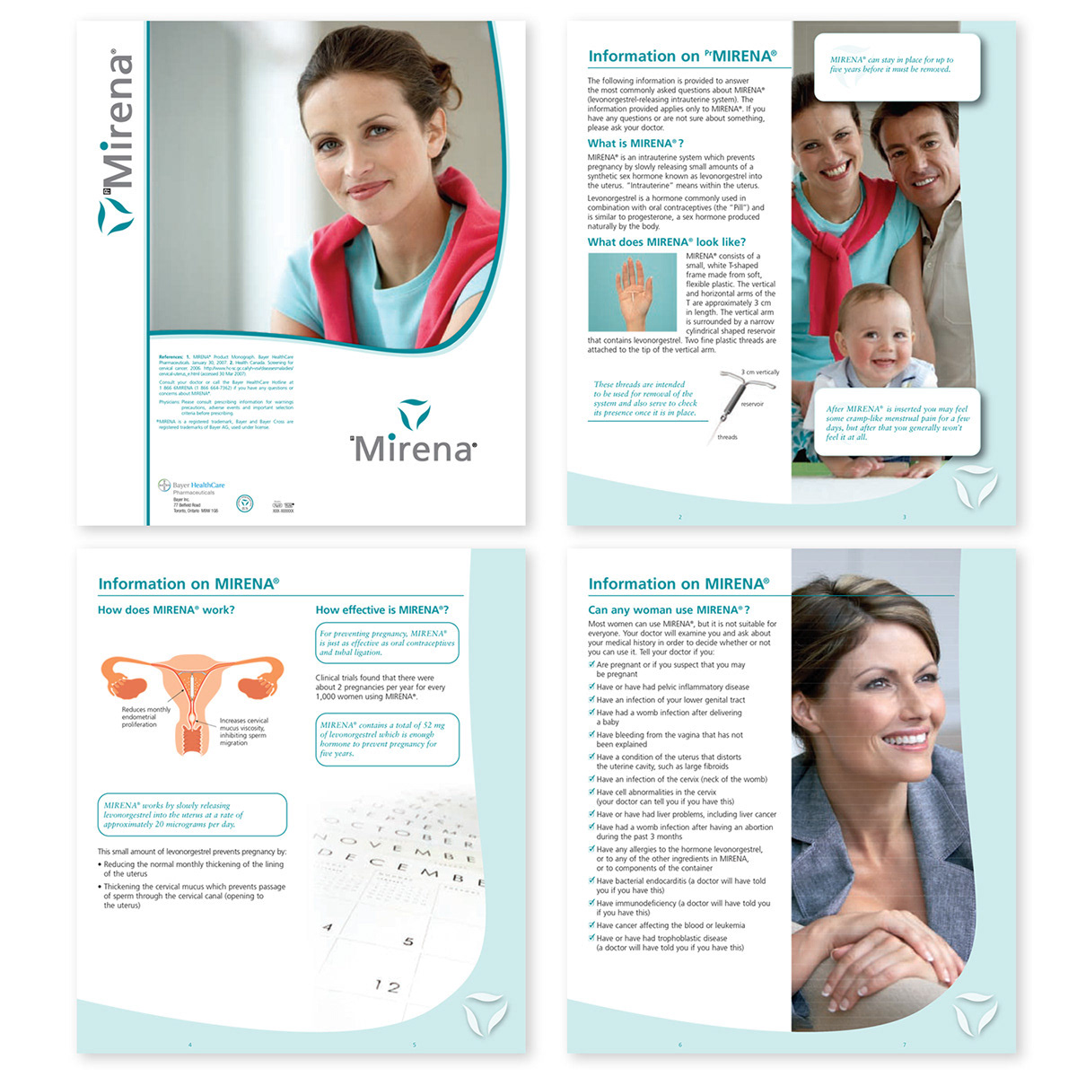 Under the expert guidance of the Art Director and utilizing Bayer Healthcare’s provided branding elements and imagery, I meticulously designed a comprehensive multi-page print brochure dedicated to Mirena®, an innovative intrauterine birth control option. The brochure served as an authoritative educational tool, effectively communicating the product’s key benefits, precise usage guidelines, safety information, and clinical advantages to women seeking reliable reproductive health solutions.