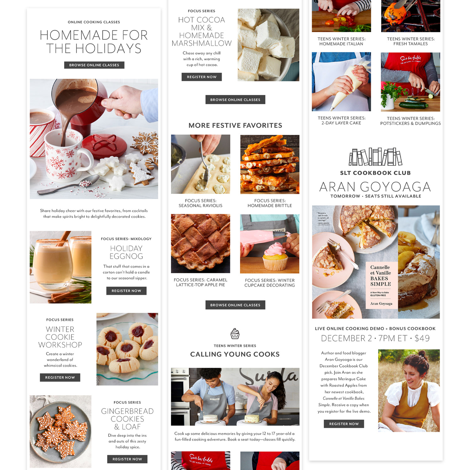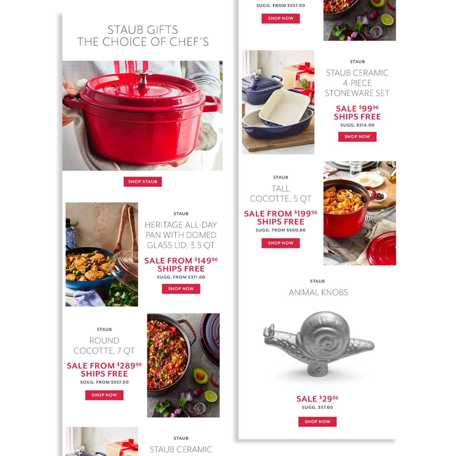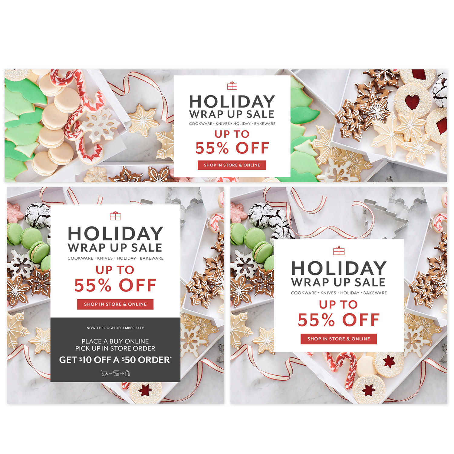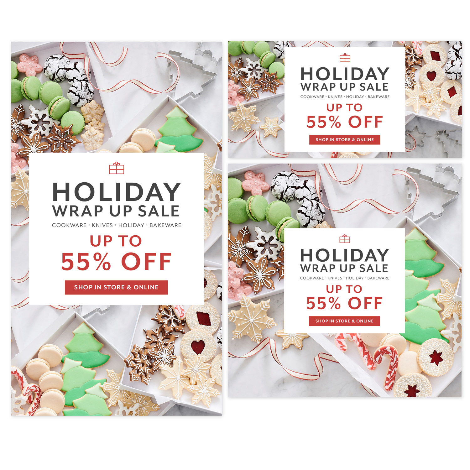 The Holiday Wrap-Up Sale campaign for Sur La Table delivered post-holiday urgency through targeted email blasts, eye-catching web banners, and vibrant social media assets. Featuring steep discounts on must-have cookware, bakeware, and entertaining accessories, the multi-channel push cleared seasonal inventory while delighting customers with last-chance deals to refresh their kitchens for the new year.