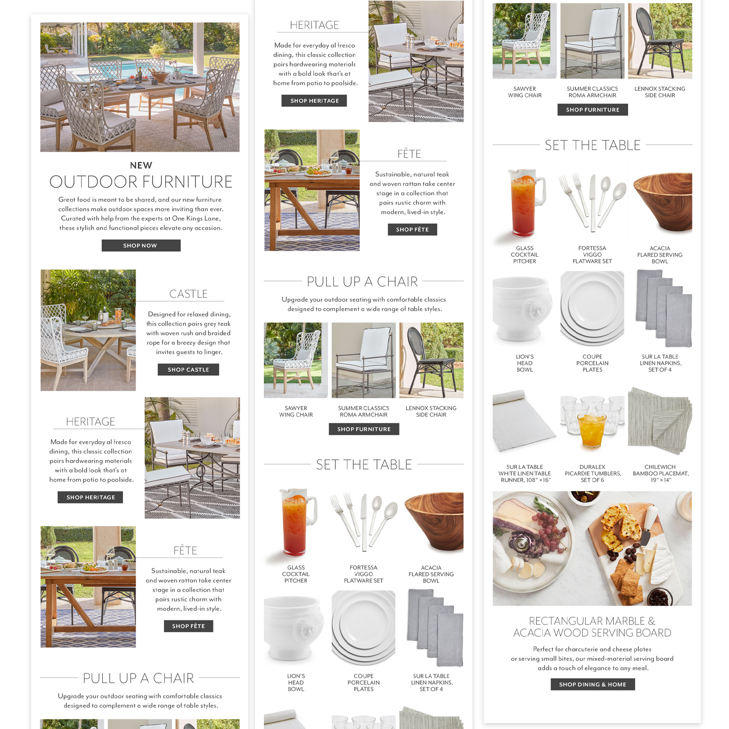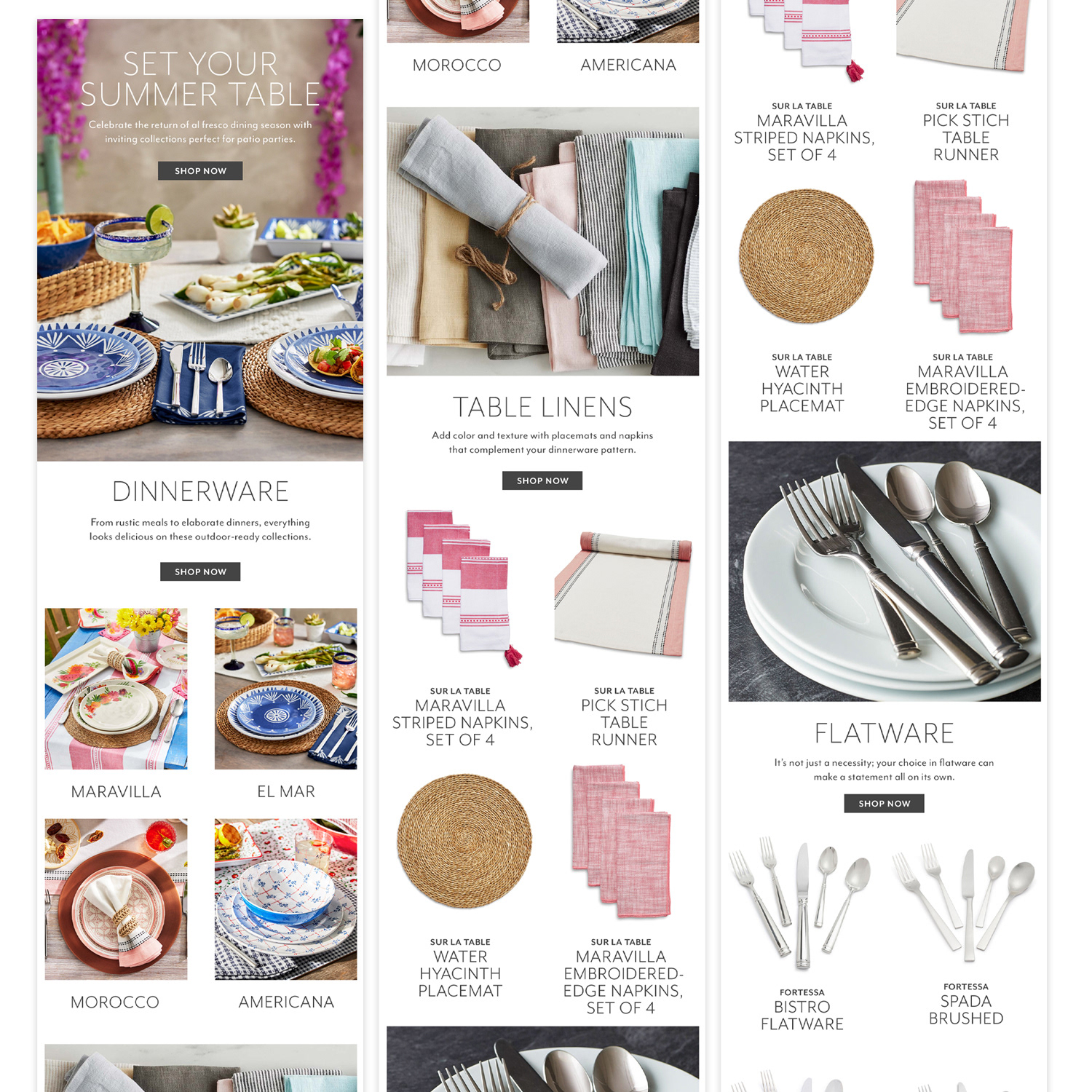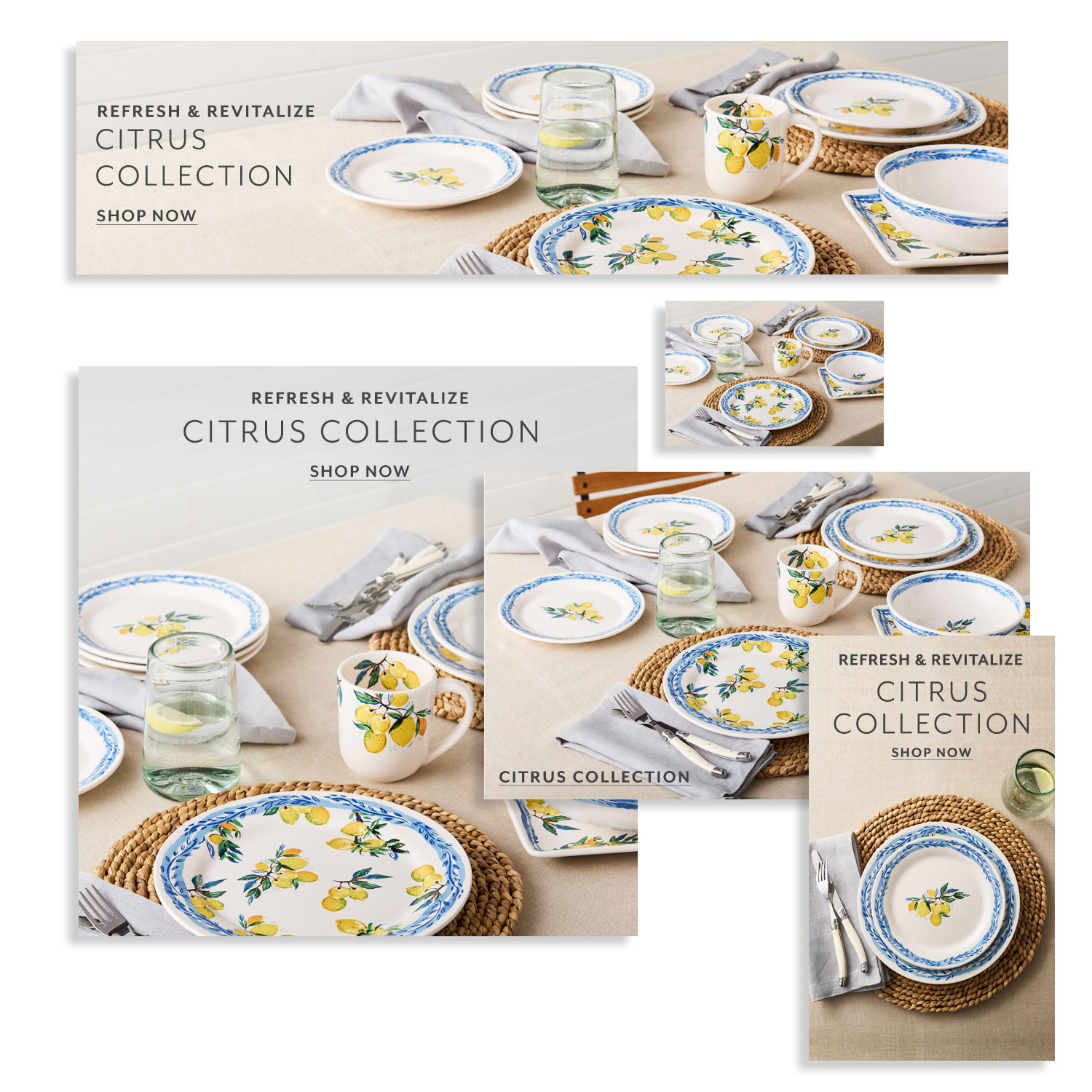 The Citrus Collection Sale campaign brought a burst of sunshine to Sur La Table customers through a vibrant, cohesive rollout of custom assets. Playful email series with zesty animated headers, refreshing website banners showcasing lemon-yellow cookware and lime-hued tools, and lively social media posts featuring juicy close-ups and bright lifestyle imagery drove excitement and sales for the limited-time collection of patterned linens, colourful ceramics, and summer-entertaining essentials.