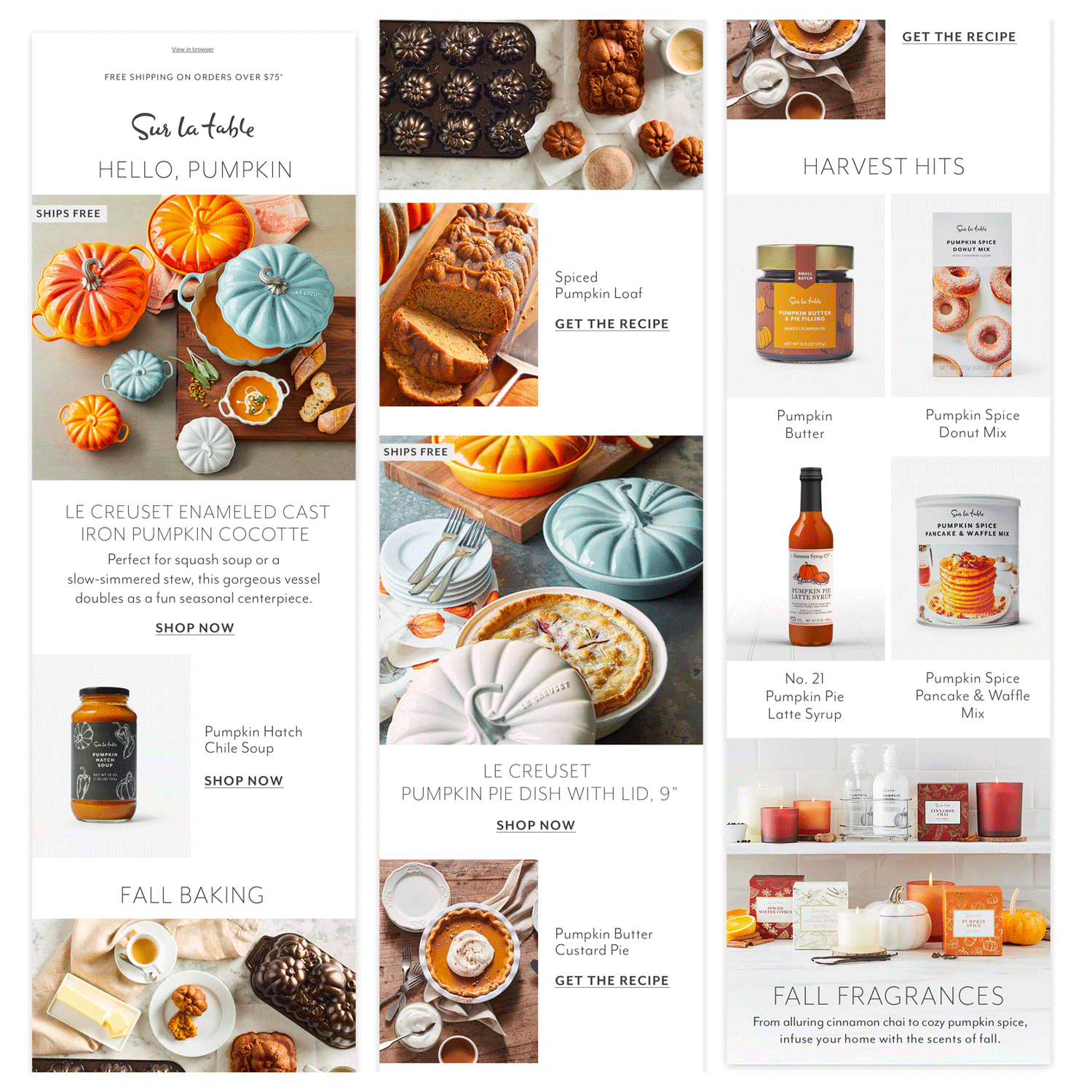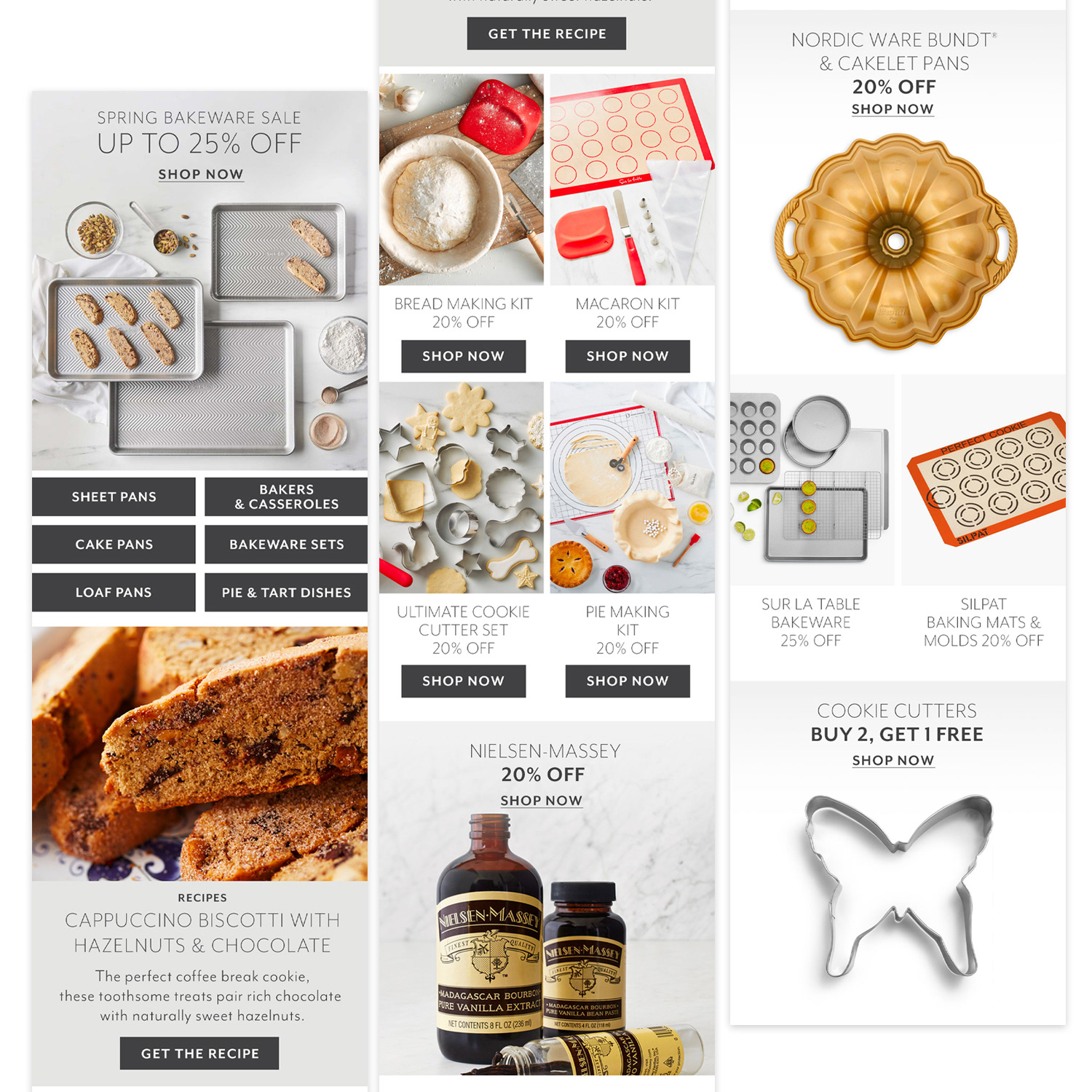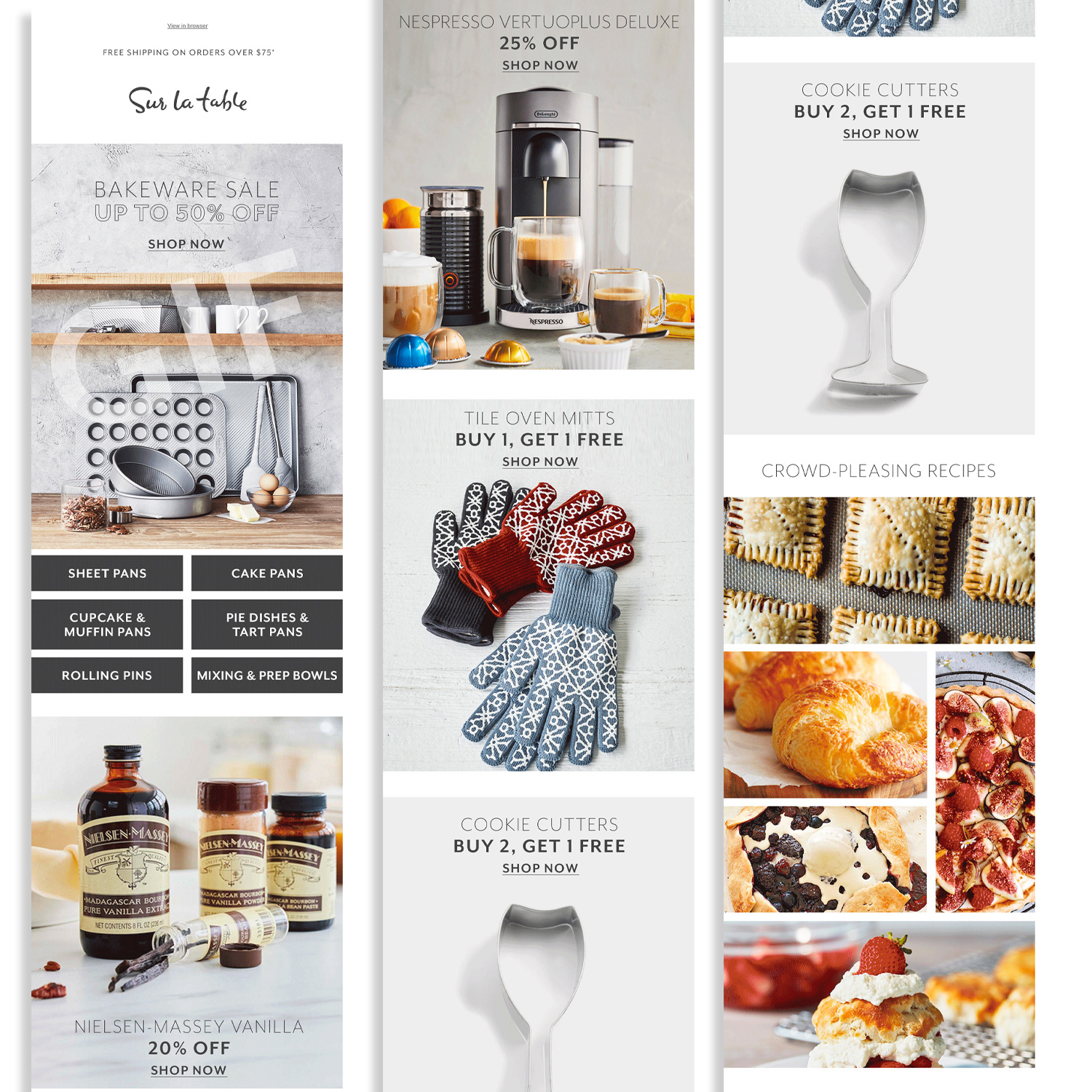 This standalone email campaign for Sur La Table captivated subscribers with a delightful animated section featuring a seamless rotation of festive cookie cutters. Paired with tempting offers on baking tools, decorating kits, and premium bakeware, the playful animation drove record open-to-click performance.