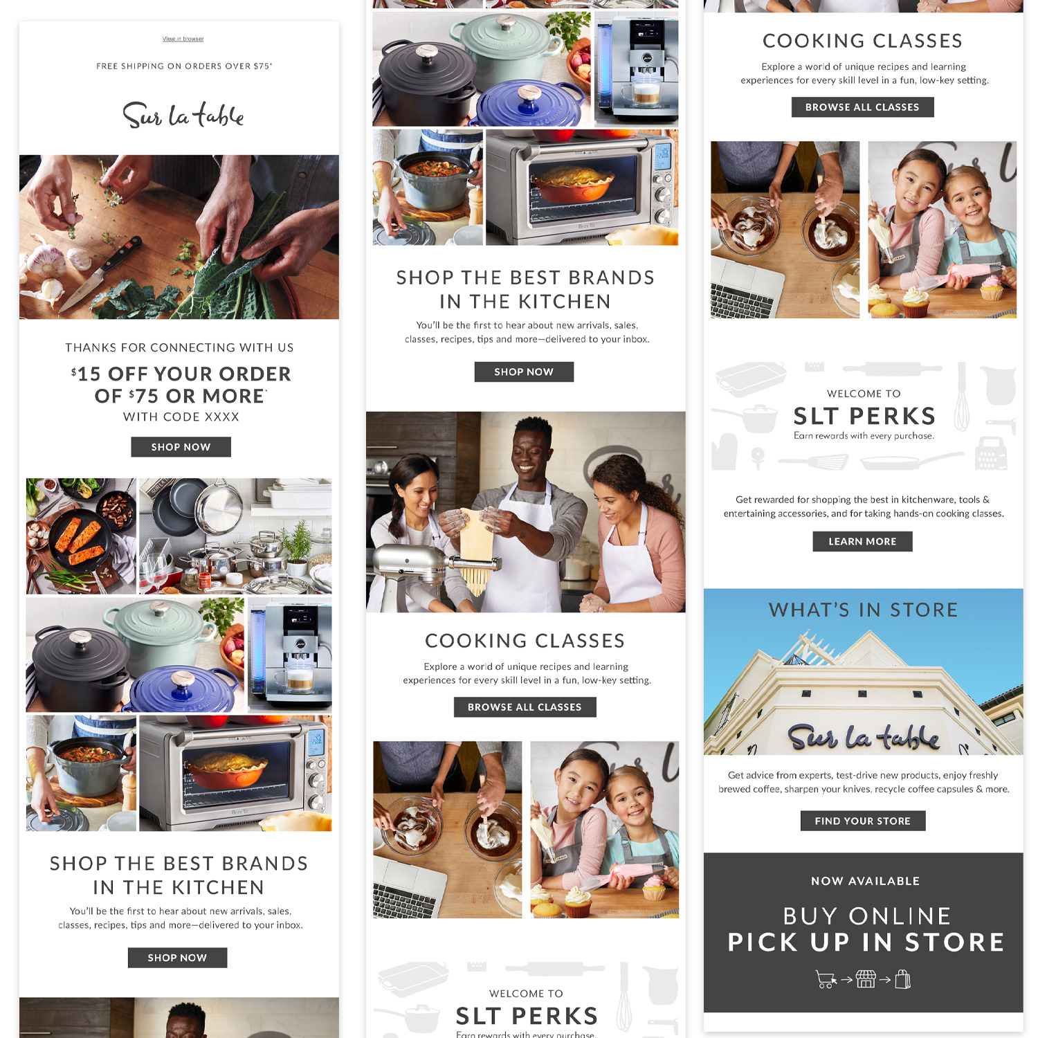 The Sur La Table Collection Sale campaign spotlighted premium curated lines through a cohesive multi-channel strategy, including targeted email blasts, striking web banners, dynamic website integrations, and engaging social media assets. By showcasing cohesive sets of cookware and specialty tools at irresistible prices, the initiative drove urgency and sales, helping customers build their dream kitchens with sophisticated, coordinated style.