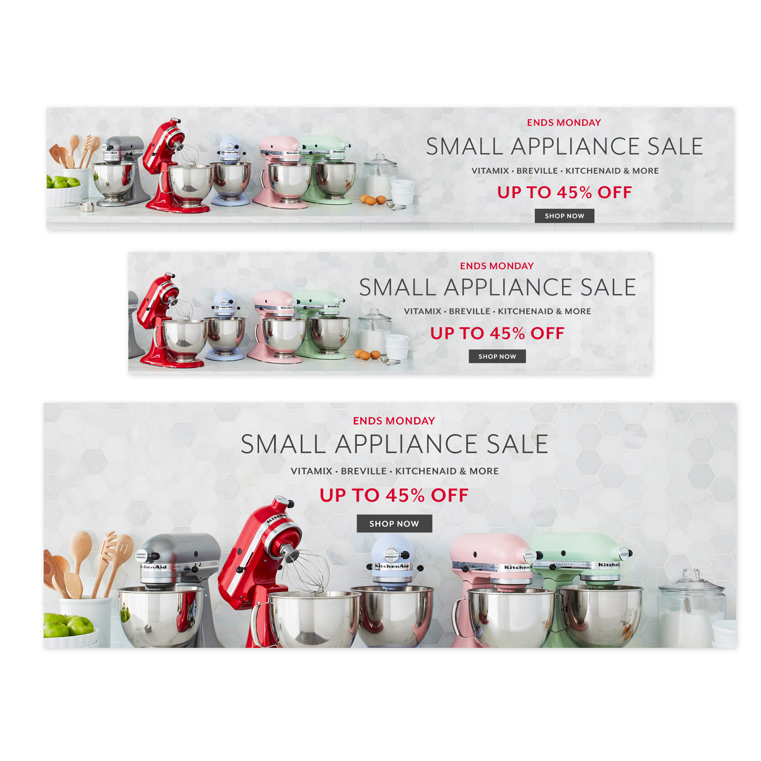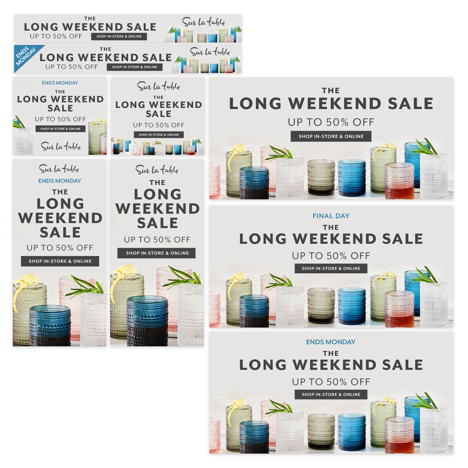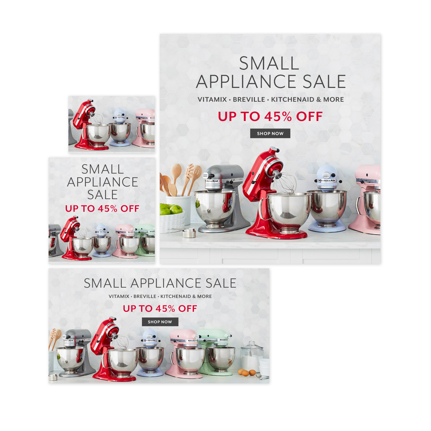 The Small Appliance Sale campaign brought a joyful pop of colour to Sur La Table’s channels with a vibrant series of static banners. Hero images showcased iconic kitchen stand mixers in a candy-bright rainbow of finishes. Clean, bold sale messaging sat atop the kaleidoscopic lineup, turning email inboxes, website headers, and social feeds into an instant craving for countertop upgrades at unbeatable prices.