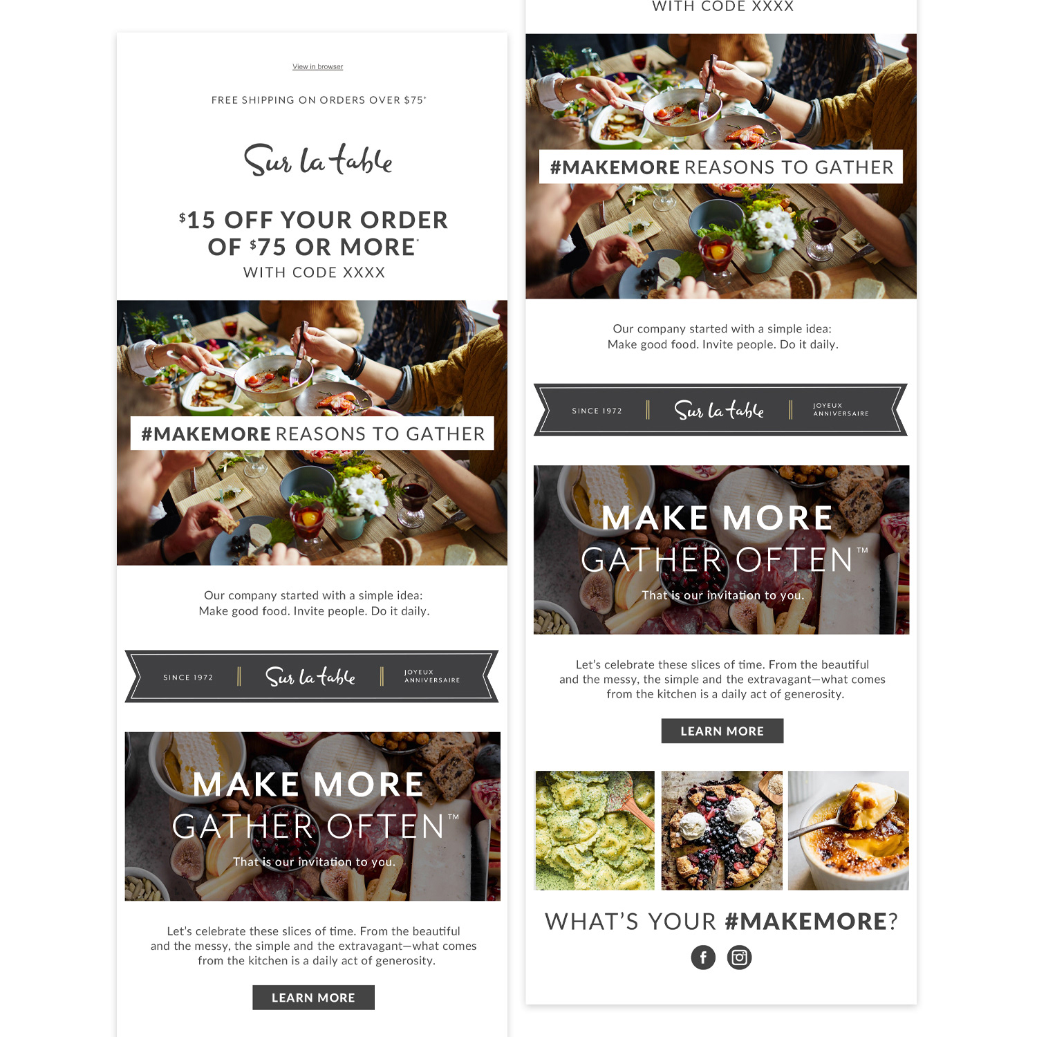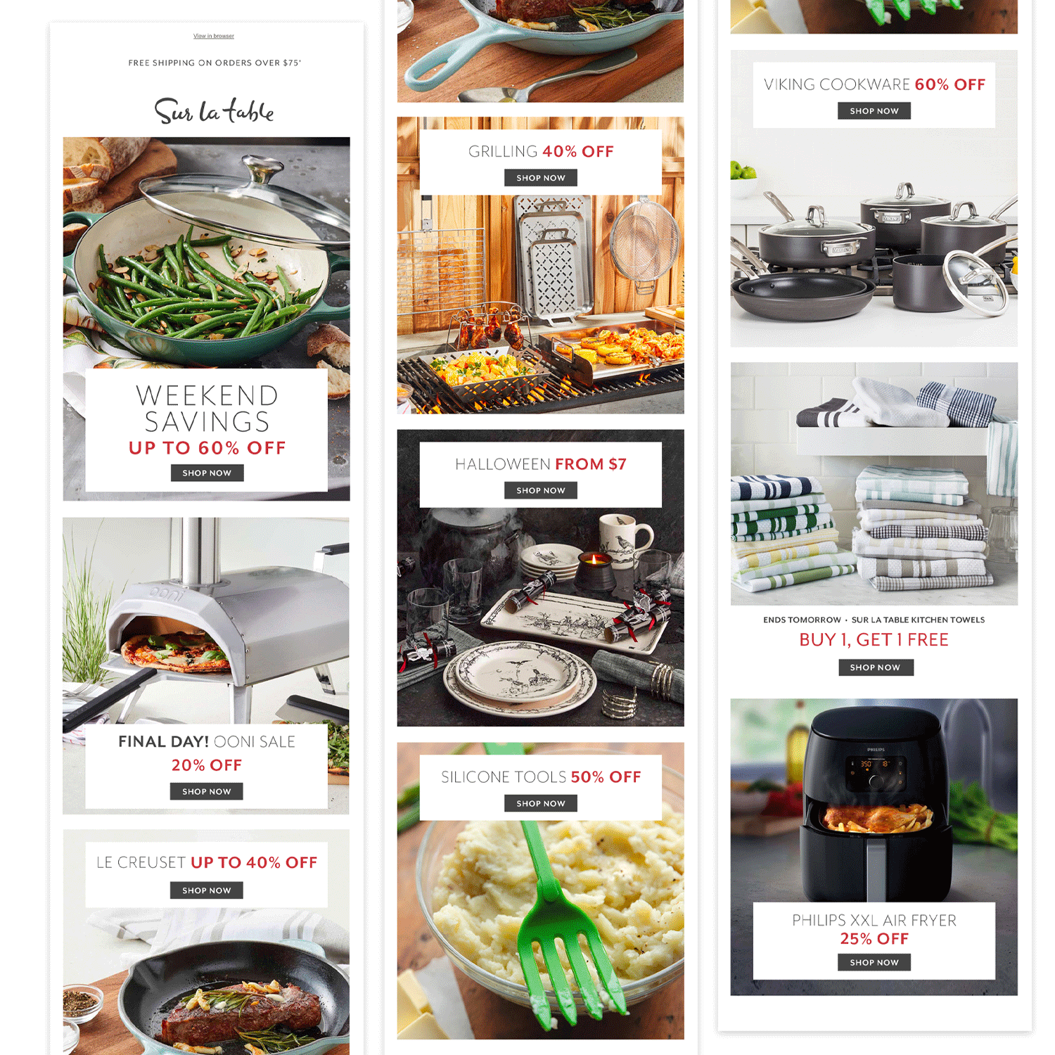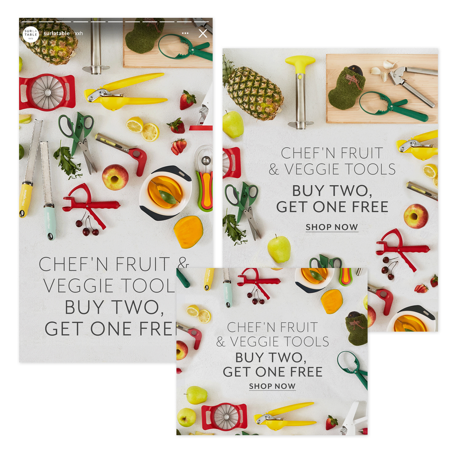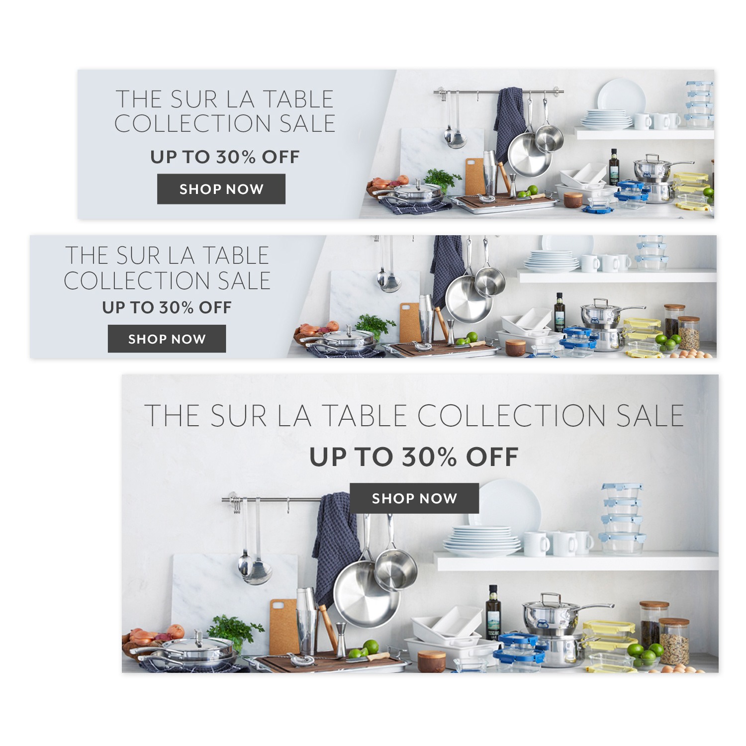 In a targeted campaign designed to boost sales of premium kitchen accessories for Sur La Table, we crafted compelling marketing assets across email, web banners, and social media. By highlighting versatile tools like sleek utensils, innovative gadgets, and stylish storage solutions, the initiative drove engagement and conversions, empowering everyday chefs to transform their culinary spaces with ease and elegance.