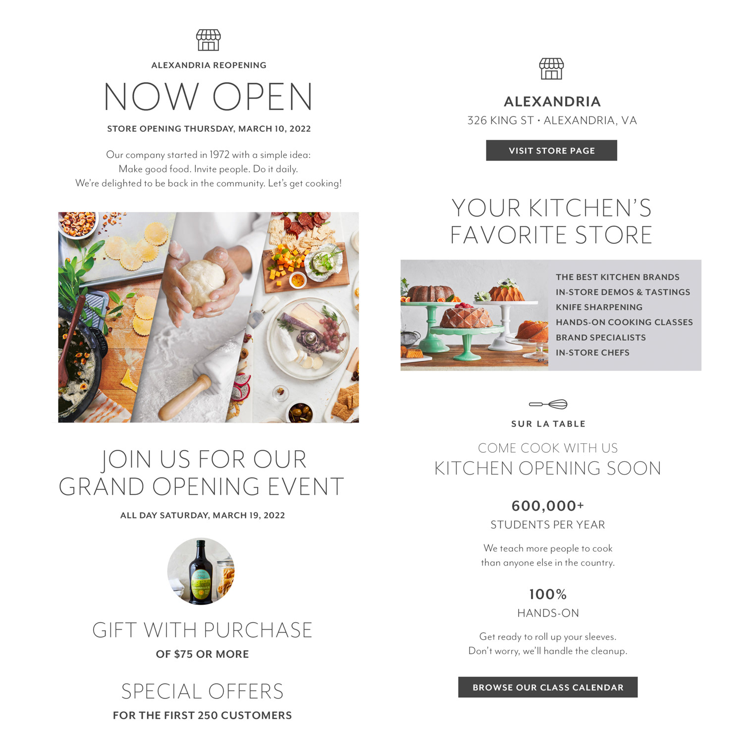 The Last Chance to Save campaign delivered pure urgency with a dramatic sequential reveal of Sur La Table’s most coveted brands. In animated emails, web banners, and social stories, name brands appeared one after another in rapid succession against a bright red backdrop. The high-impact, name-dropping animation created an unmissable FOMO moment, driving a surge of last-minute traffic and conversions before the sale vanished.