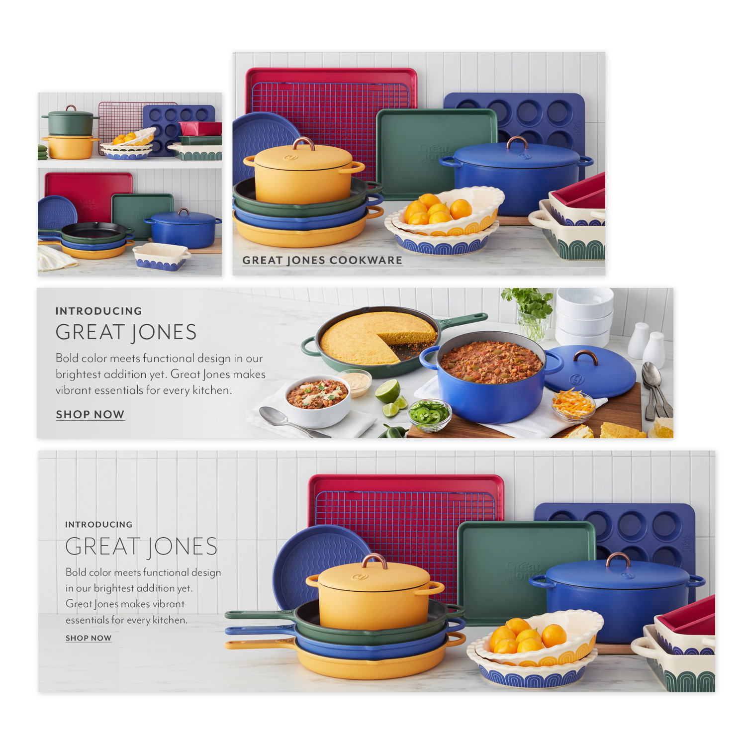 The Great Jones cookware campaign for Sur La Table exploded with unapologetic colour, spotlighting the brand’s vibrant Dutch ovens, sheet pans, and bakeware in bold blueberry, broccoli, and mustard hues. Animated email banners let the pieces slide, spin, and pop into frame with playful energy, while matching web banners and swipeable Instagram Stories drenched feeds in saturated joy. The exuberant, personality-packed assets turned everyday scrolling into instant kitchen envy, driving clicks and conversions for the most colourful cookware drop of the season.