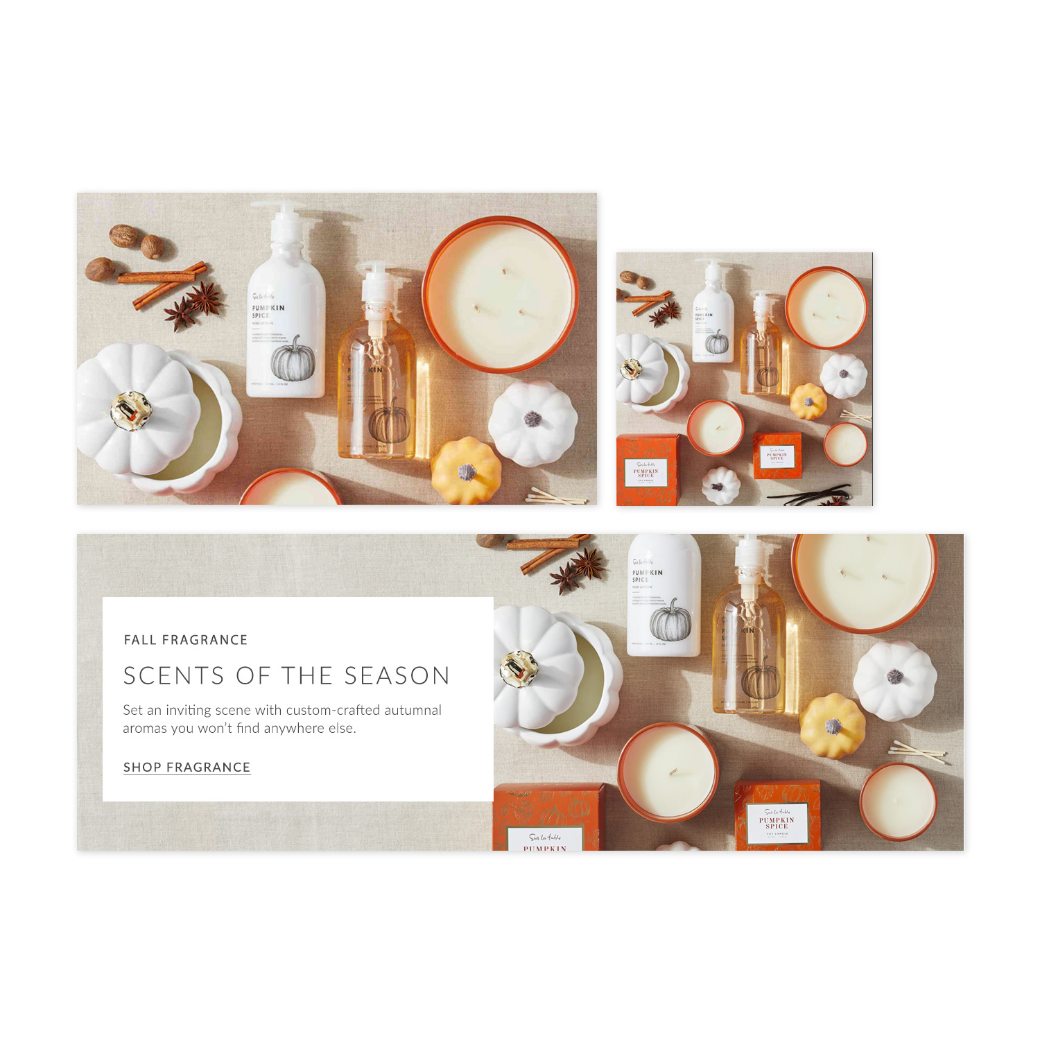 The Scents of the Season campaign wrapped Sur La Table’s customers in fall magic through a sensory-driven promotion centred on candles and diffusers. Custom website banners featuring candles paired seamlessly with festive social media banners across Instagram, Facebook, and Pinterest — each one rich with cozy textures, driving traffic and sales.
