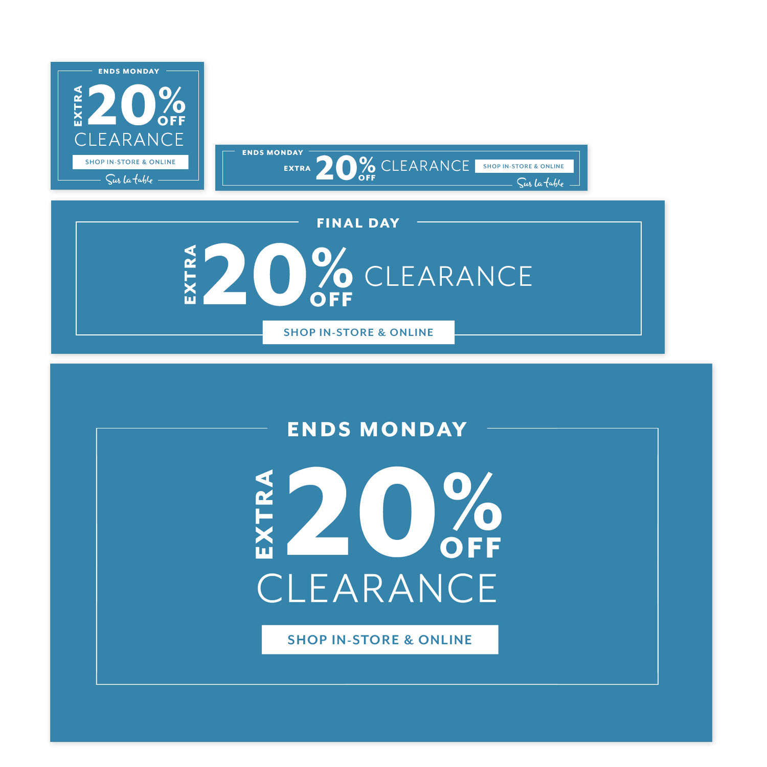 The Clearance Campaign for Sur La Table transformed post-holiday and spring overstock into must-have deals through a powerful series of clearance banners. Bold static designs and fluidly animated versions—featuring sliding discounts and pulsing calls-to-action—commanded attention at the top of clearance emails. With high-contrast, high-energy visuals screaming “now or never,” the campaign delivered a relentless urgency that rapidly cleared shelves and drove customers straight to deep discounts on cookware, gadgets, and décor.