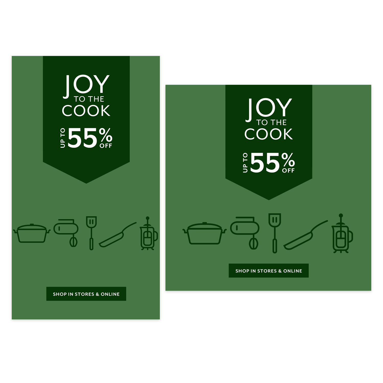 The “Joy to the Cook” campaign infused holiday spirit into every channel with pure delight. Across animated email headers and social media carousels, colourful pots, pans, and whisks joyfully danced, twirled, and clinked together like a kitchen conga line set to silent jingle bells. The playful, looping animations—paired with warm greetings and curated gift ideas—turned ordinary promotions into a celebration of cooking happiness, spreading smiles and driving engagement throughout the festive season.