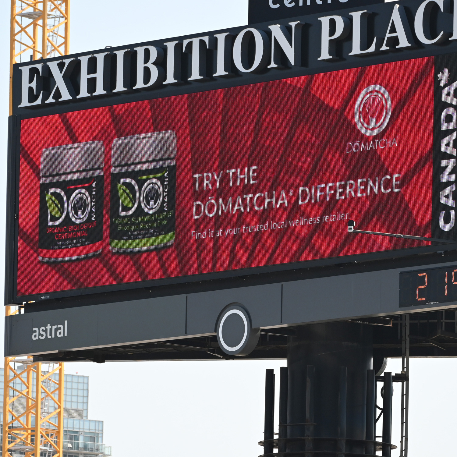 Designed a striking 14' x 48' billboard for DōMatcha, prominently positioned along Toronto’s busy Gardiner Expressway to capture commuter attention and drive brand awareness. Centred a vibrant red Japanese paper umbrella as the hero background—symbolizing tradition, elegance, and cultural authenticity—while framing premium matcha imagery and bold, minimalist messaging. The eye-catching contrast against Toronto’s skyline reinforced DōMatcha’s Japanese heritage, sparked curiosity, and directed traffic to retail and online channels, blending cultural storytelling with high-visibility urban advertising.
