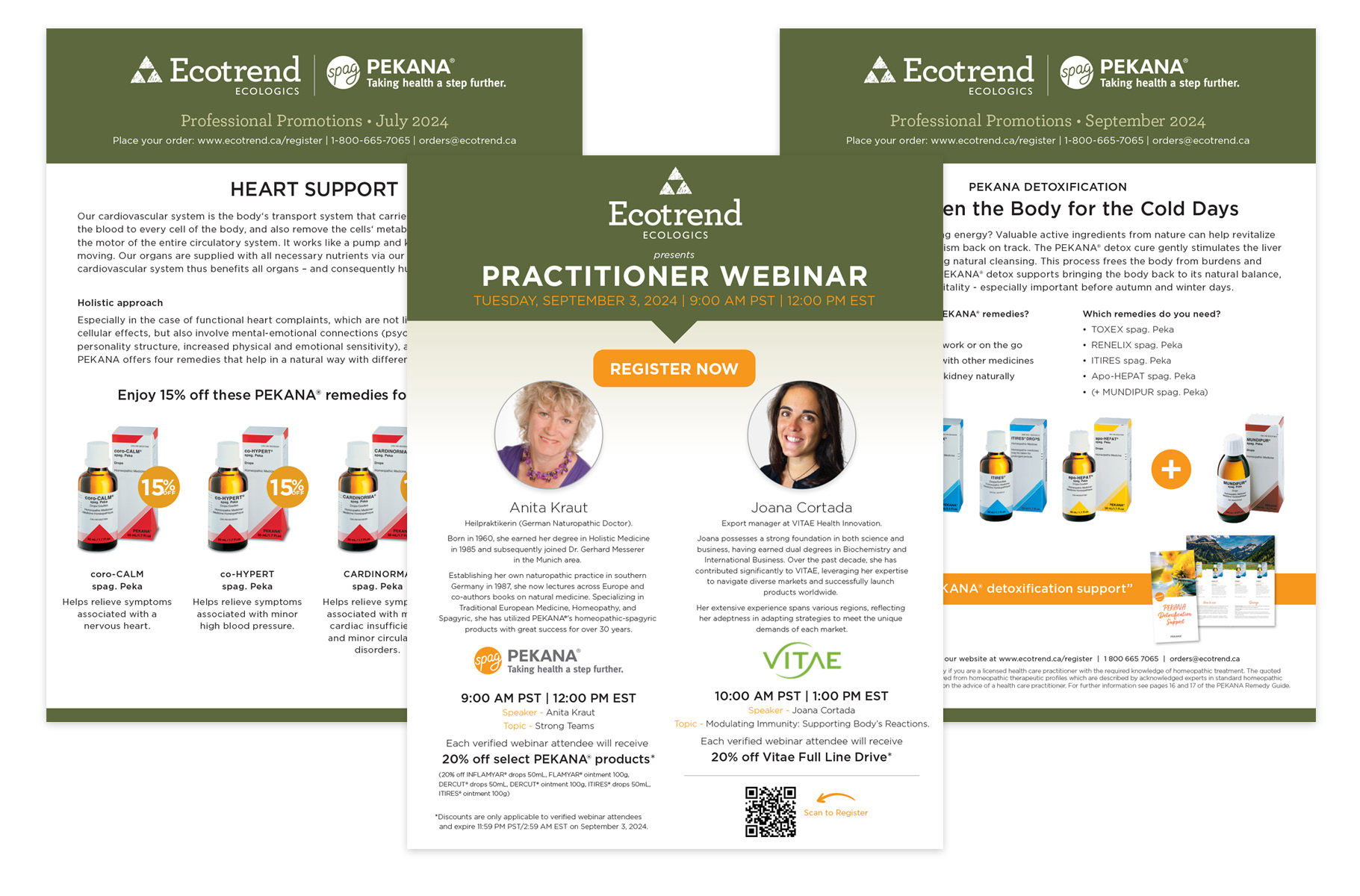 This dual-purpose approach—print-ready for tangible impact and interactive for digital accessibility—streamlined workflows, maintained brand integrity, and delivered measurable results in promotion response rates and webinar attendance for professional audiences in the wellness and natural health sector.