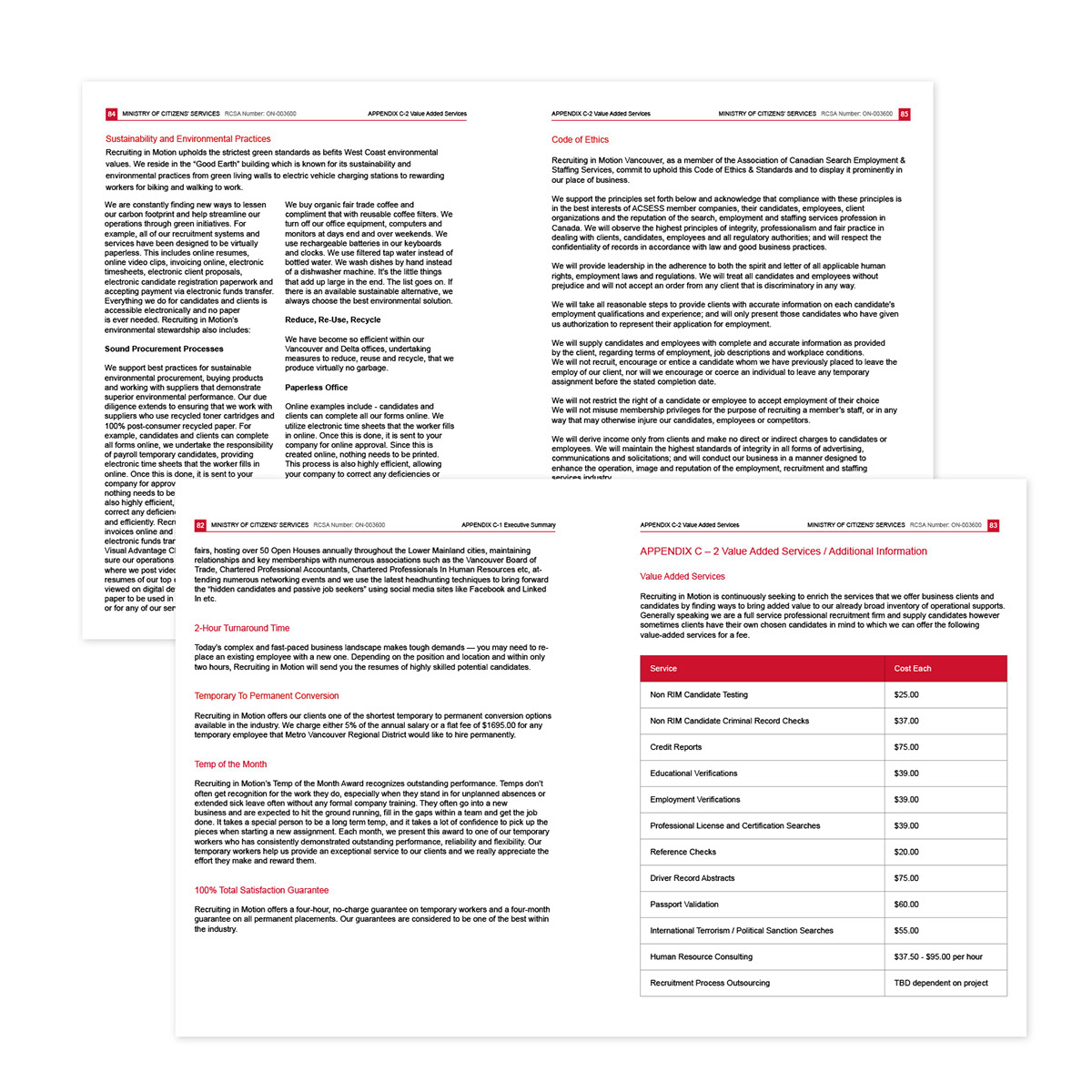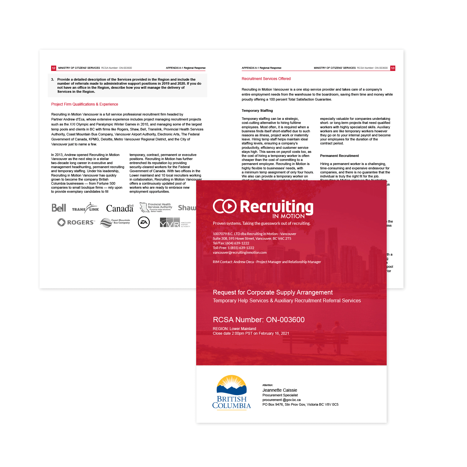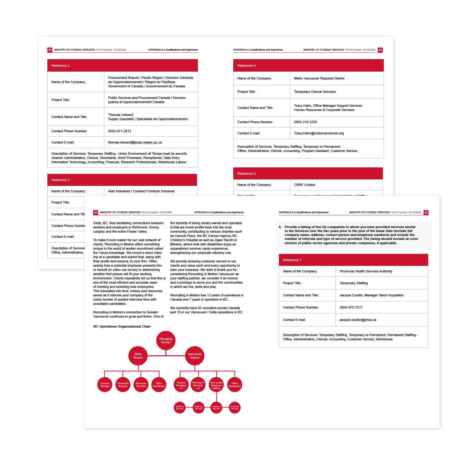 These materials were developed for some of British Columbia’s most prestigious organizations, including Vancouver International Airport (YVR), the University of British Columbia (UBC), Metro Vancouver, the BC Government, and WorkSafeBC. Each project reflected a deep understanding of the client’s unique needs, regulatory requirements, and brand identity, resulting in authoritative, credible documents that effectively solicited bids, communicated complex information, and reinforced organizational professionalism in competitive procurement and public-sector environments.