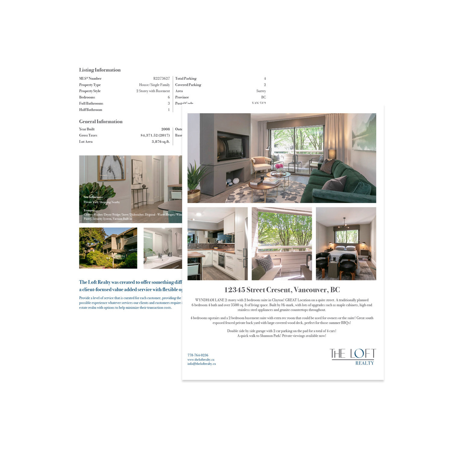 I created a versatile, high-impact two-page fact sheet system for The Loft Realty agents nationwide. Each template seamlessly fused the core Loft brand with the agent’s personal accents and local market data—delivering a polished, ownable leave-behind in minutes.