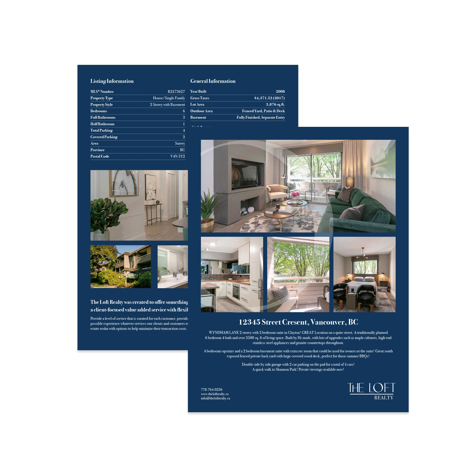 Clean, modern layouts showcased stunning property photography, key stats, bold typography, and clear calls-to-action that turned casual visitors into serious buyers. Delivered as print-ready PDFs and tablet-friendly digital versions, these sheets became every agent’s secret weapon at open houses and listing presentations.