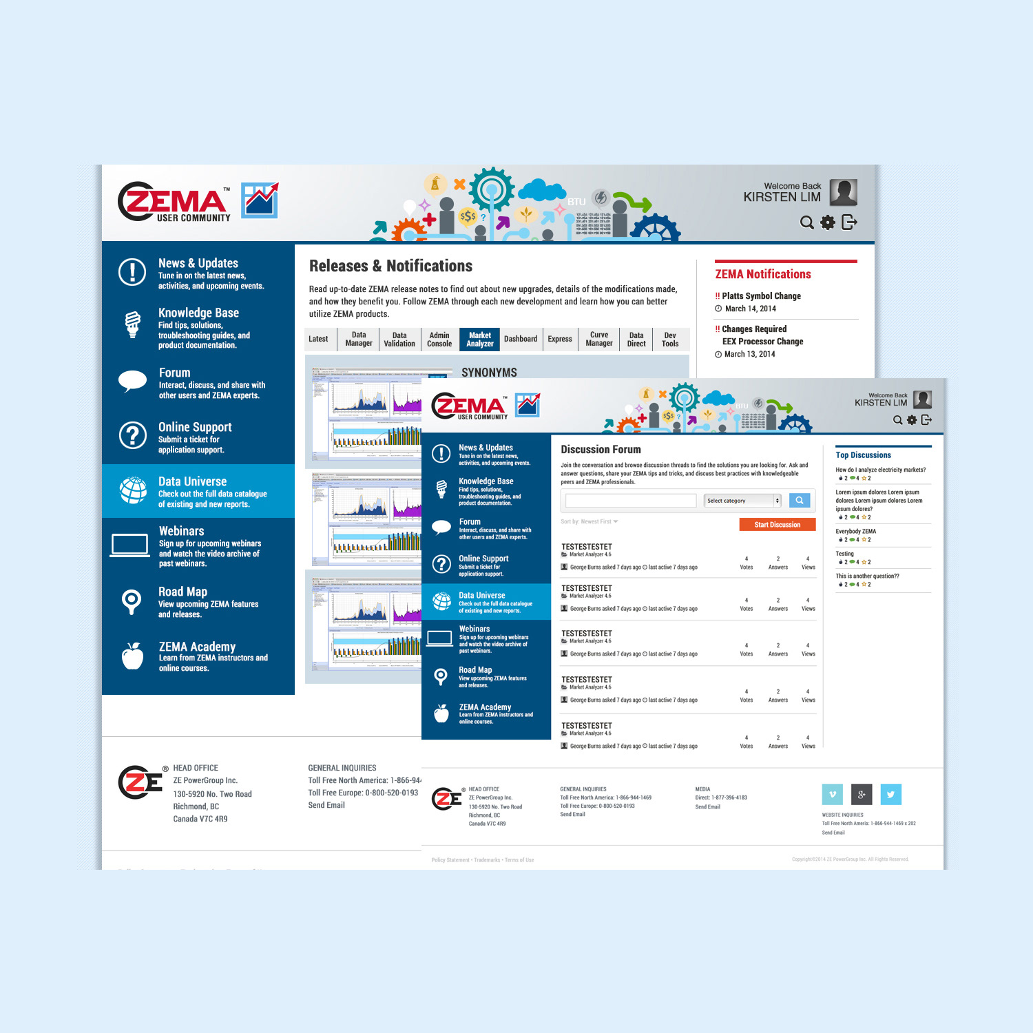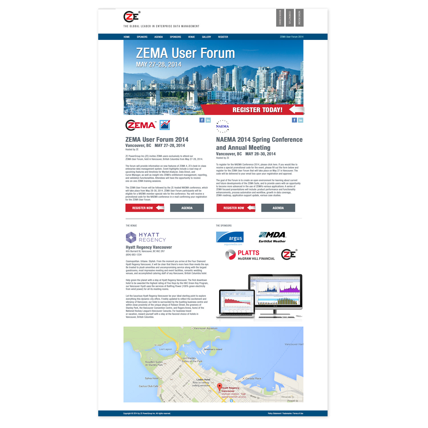 Furthermore, I played a pivotal role in bolstering the Sales Team's efforts by developing compelling assets tailored for the User Forums hosted in Toronto and Houston. These forums served as premier events, enlightening clients on optimal utilization of the ZEMA software. Collaborating closely with programmers, I orchestrated the design of the events page on our corporate website. This encompassed implementing intuitive features such as a calendar interface, dynamic carousels, and illustrative icons, ensuring seamless user navigation and comprehension.