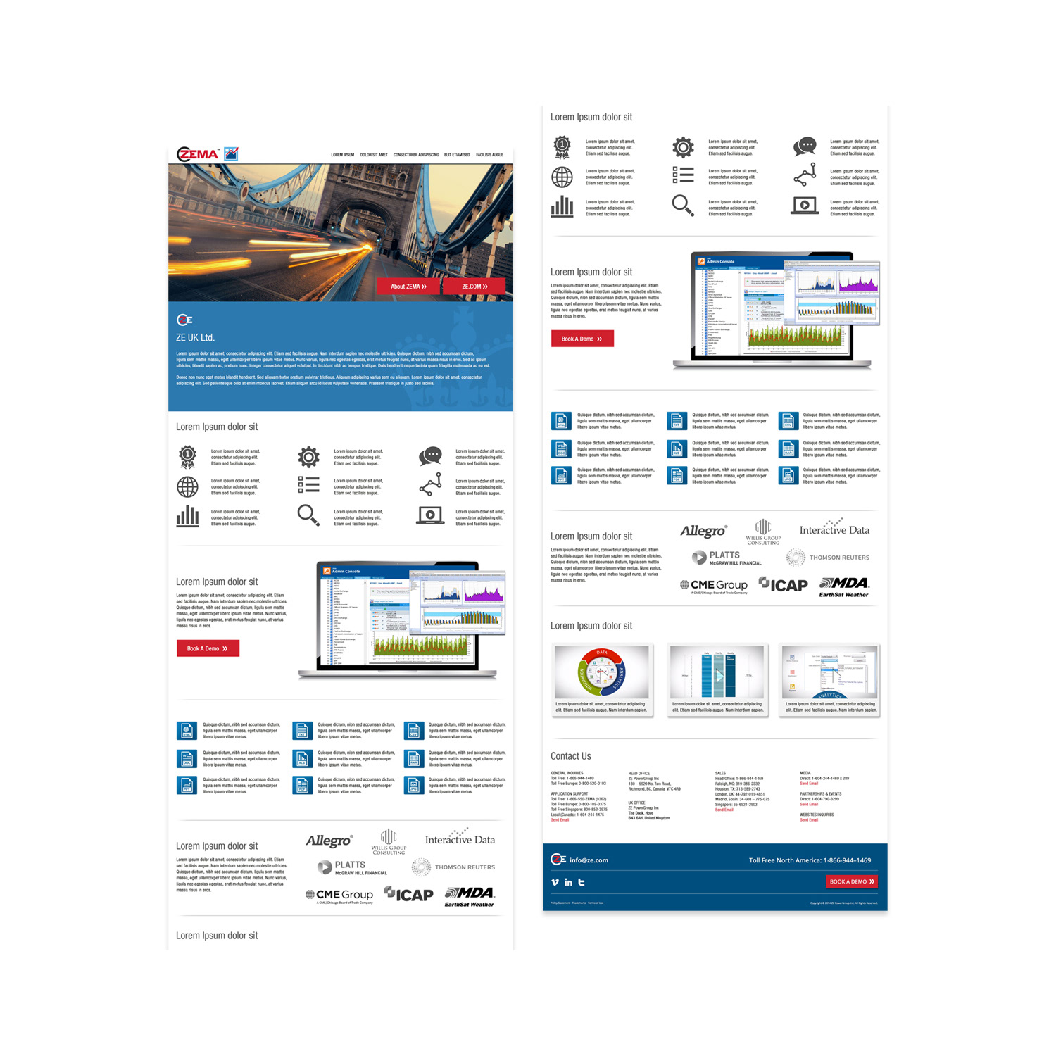 Working closely with developers, I created detailed wireframes and high-fidelity mockups in Adobe Photoshop, focusing on optimal spatial design, content hierarchy, feature functionality, and user interaction flows. These assets provided clear blueprints that ensured the final site delivered seamless interactions with ZE’s complex energy and data management products. Through iterative A/B testing and stakeholder presentations, we refined the interface for maximum usability and conversion, while maintaining strict brand consistency across all pages.