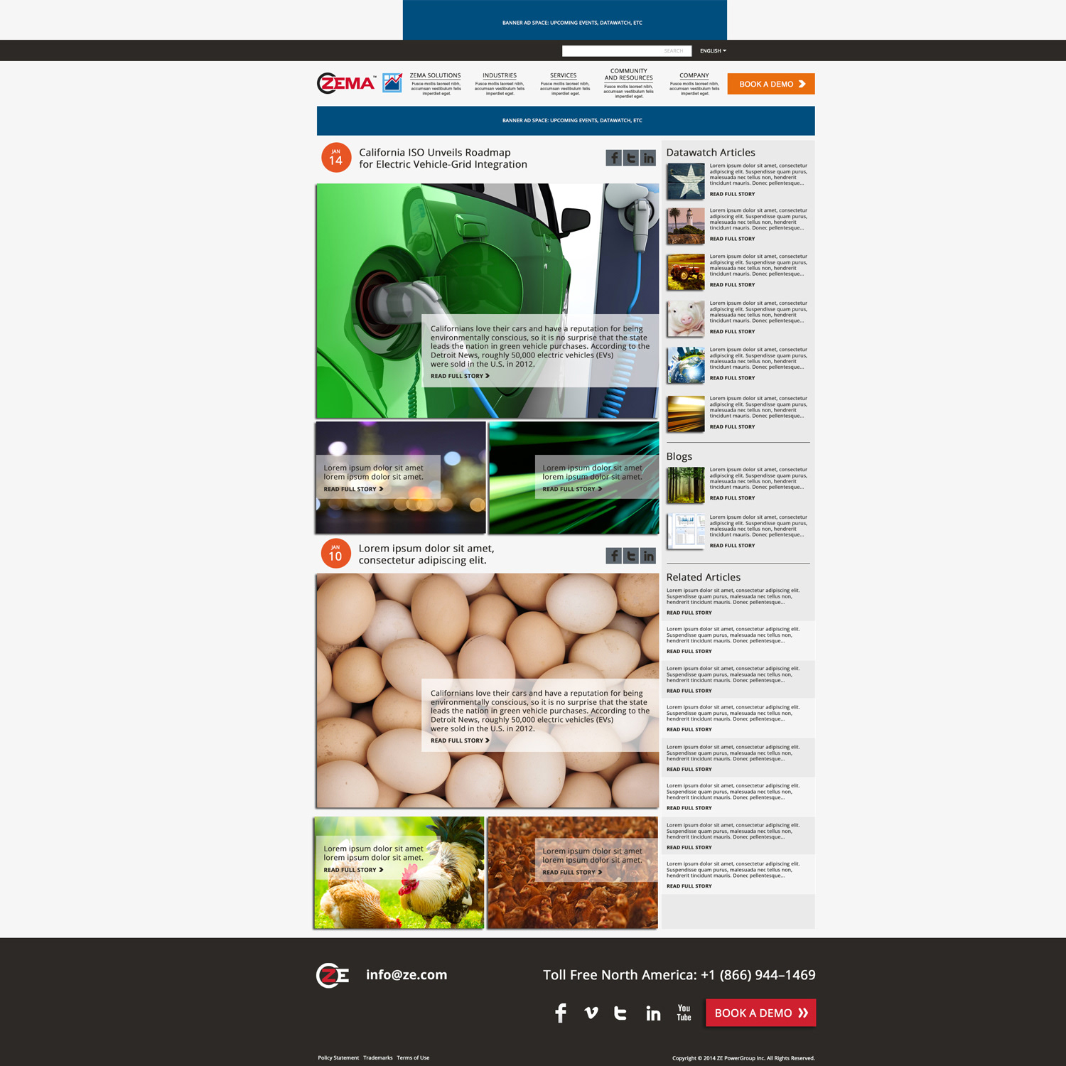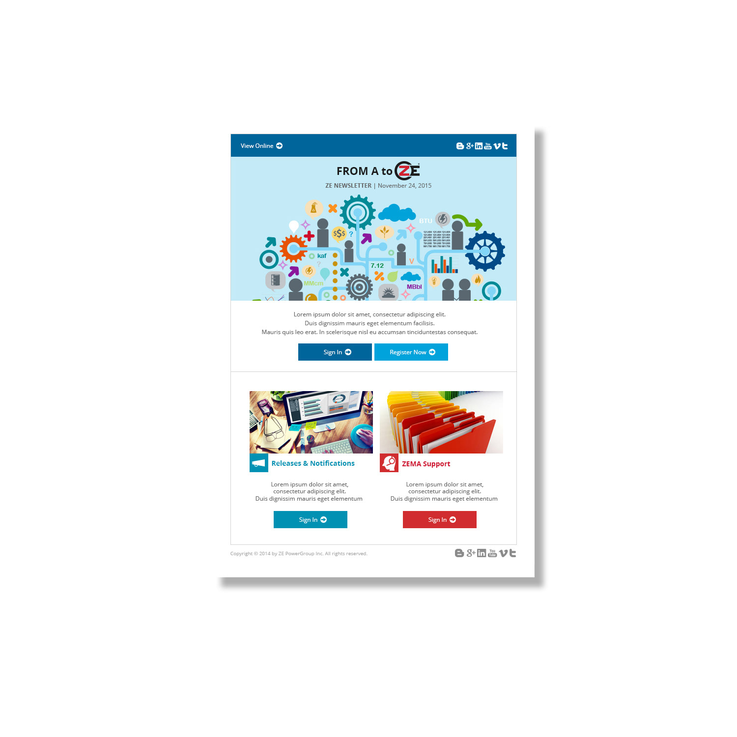 During my tenure, I revamped the monthly client newsletter, infusing it with a fresh aesthetic featuring user-friendly icons, seamlessly integrated social media links, enriched imagery, and dedicated ad spaces spotlighting ZE's corporate objectives. Utilizing Adobe Photoshop, I meticulously redesigned the newsletter template before seamlessly transitioning it to our development team.