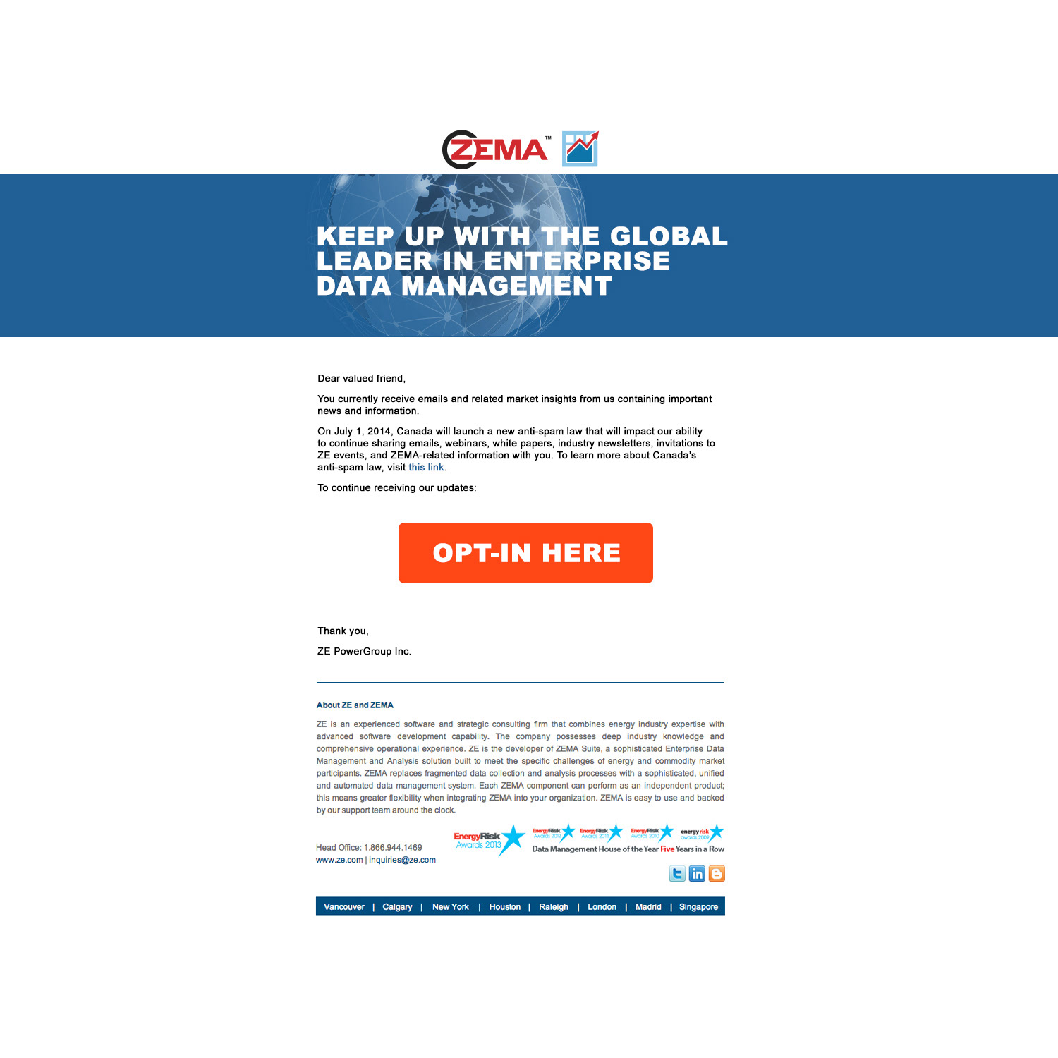 Utilizing Adobe Photoshop, I curated layouts that incorporated content from our copy team, imagery sourced from stock photography, and screen captures of the ZEMA software interface. Upon endorsement by the Head of Marketing, these files were handed over to our programming team for email development, after which we collectively executed rigorous quality assurance measures.